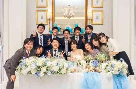 新郎新婦の名前が海に纏わる名前だった為、海をイメージした装飾になりました。ブルー×ホワイトに貝殻を散らし、“感謝”という花言葉のカスミソウを使って会場装飾を用意しました。新郎様のウェルカムスピーチでは、テーマの説明やお二人からゲストへの想いを語って頂きました。なかなか会えないゲストとの時間を大切にするために歓談の時間を多めに取って進行を考えていきました。
