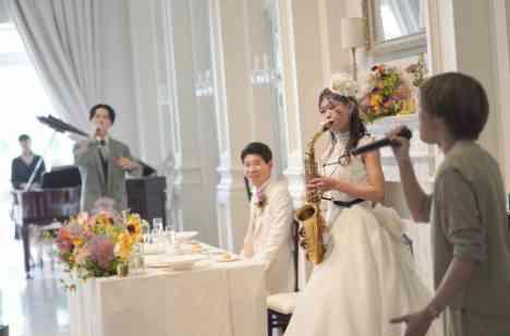 お2人のイメージされていたミュージカルを兼ねた結婚式をどう叶えることが出来るかを相談し 音の大きさやタイミングをお打ち合わせしておりました ご新婦様と仲のいいご友人様と共に中座中にサプライズでミュージカルを行い生演奏と生歌の中でご中座される姿はミュージカルを生で見ている感覚になり素敵なお時間になったと思っております
