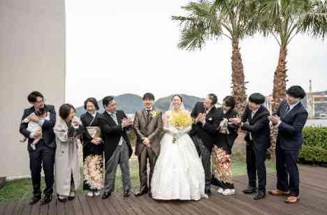 お打ち合わせの間から愛が強く家族仲良しなお二人だからこそ、ご家族とのご対面から1日をスタートしました!長崎の海を眺めながら懐かしいお写真を振り返っていただいたあとに、お手紙でお二人から感謝の想いを伝えていただいたことで、感謝の気持ちが伝わった状態で迎えられる挙式に。 ご両家同士も距離が近くなる温かい時間となりました。