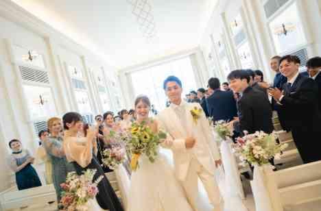 ホワイトハウスの真っ白なチャペルは夏の綺麗な青空と海が映えるロケーション!お二人が選んだのはずっと憧れていた王道の挙式スタイル。お二人の幸せを祝福していただくとともに、県外の方には長崎らしい景色も楽しんでいただくことができます。 また、ゲストの皆様との距離も近いので退場時にはお互いの声や表情が見える温かい時間を過ごしていただけます。