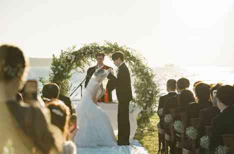 元々はハワイやグアムなど海外でのリゾートウエディングに憧れていたおふたり。海外での挙式は現実的に叶いませんでしたが、ヴィラズのこの水平線まで続く海と広々としたガーデンがあれば理想に近い結婚式が作れるかもと思いヴィラズを結婚式会場として選びました。お花のアーチ装飾や、バージンロードのアイルランナーもすべて妥協せずこだわりの詰まった空間に。ゲストもこんなの初めて!と楽しみながら参列してくださいました。