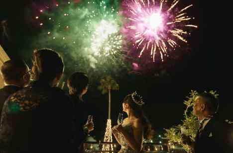 ヴィラズでは大人気のプライベート花火。パーティーの結びにゲストと新郎新婦でグラスを片手にウッドデッキへ。おふたりからの「乾杯!」のご発声と同時に花火を打ち上げることが出来る完全プライベートの花火です。会場敷地内で花火師が打ち上げてくれる花火は迫力抜群で一生の思い出になること間違いなしです。ゲストへのサプライズプレゼントで大盛り上がりのパーティーが結びを迎えました。
