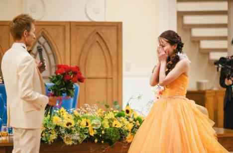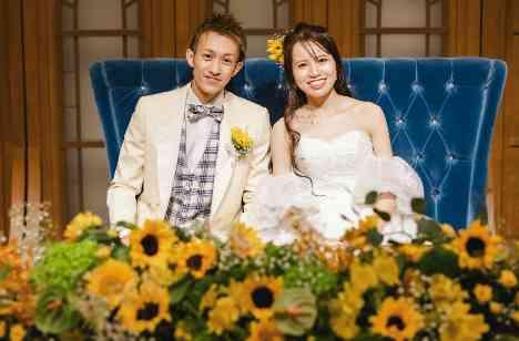 新婦様の好きな向日葵を使用してメインテーブルやゲストテーブルを夏らしくイメージした会場を作りました。また、ウエディングケーキにもこだわりケーキには向日葵を装飾して世界に1つしかない二人だけのケーキを準備しました!お二人で仲良くケーキ入刀!記念すべき一瞬をたくさんのゲストにお撮り頂きました!最高です!