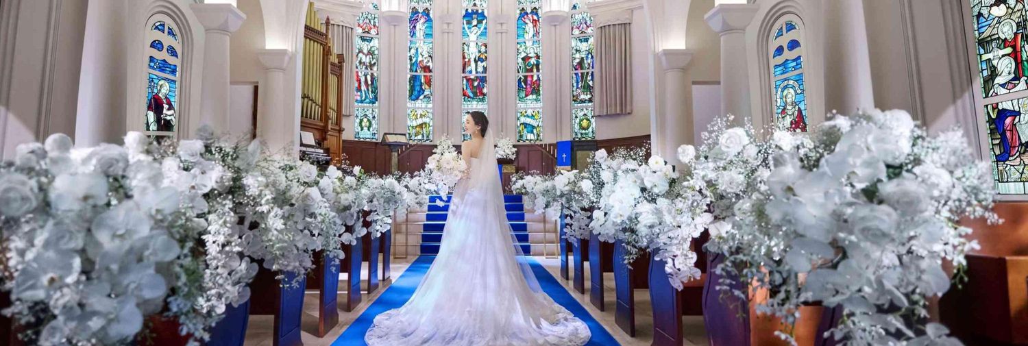 - 1件目来館特典:ステンドグラス×ロイヤルブルーの大聖堂の挙式料全額無料(22万円相当)のチャンス!!