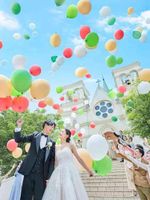 カリヨンの鐘が街中に響き渡ると同時にチャペルの扉が開かれる。四季折々の花や緑に囲まれ、ゲストのとびきりの笑顔と「おめでとう」の声に幸せな気持ちが一気にこみあげてくるフラワーシャワー。大階段で撮影するゲスト全員での集合写真は一生の宝物に。