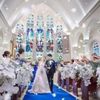 - ステンドグラス×青のバージンロードの大聖堂での本格挙式*全額プレゼント!(22万円相当)