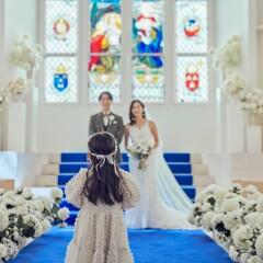 - はじめての式場見学でお越しいただくとステンドグラス×青のバージンロードの大聖堂での本格挙式*全額無料(22万円相当)!