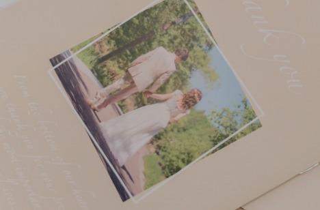 プロフィールブックは前撮りの写真や思い入れのある写真をたくさん使いたかったのと、費用を少しでも抑えたかったので、Photoshopを使い1からレイアウトを考えて作りました。全部自分でデザインができるのでOur Storyや写真だけのページを入れることができました。席札は100円均一のミラータイルを買ってきて、1人ひとり心をこめながら手書きで名前を書きました。