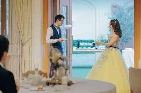 披露宴会場にはガーデンが併設されていてウェルカムパーティで自分たちのオリジナルカクテルを提供したり、デザートビュッフェでは美味しいデザートを食べながら会話をしたり写真を撮ったりすることができました。皆リラックスして楽しめていたので良かったです。私たちのコンセプト通りなアットホームな時間を過ごすことができました。