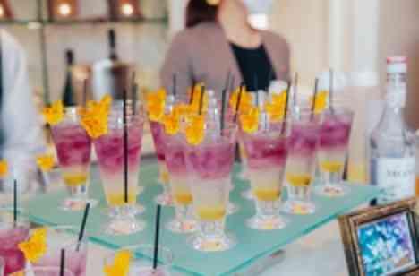 ゲストへのおもてなしとしてスタッフと一緒にオリジナルカクテルを考案しました。 季節に合わせてアジサイの可愛らしいポップをお二人が手作りされ、グラスには黄色い蝶々を装飾に加えました。 オリジナルカクテルはゲストの皆さまにも『カワイイ』と大反響♪お酒好きなゲストも多くご参加され、ガーデンパーティは大盛り上がりでした!