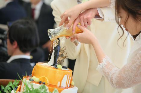 黄色が大好きなので、カラードレス・会場のお花・ナフキン・ブーケ全てをイエローにしました♪ オリジナルカクテルも用意しましたが、旅行で行った沖縄の美ら海水族館をイメージしてつくりました♪ とくにこだわったのは、ケーキです!甘いものがとにかく大好きで、ケーキは絶対にかわいくしたい!と思っていました。1ヶ月ほどかけ、こだわりのケーキトッパーを探しました!