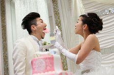 ふたりの好きな色「ピンク & ミントグリーン」で全体をおしゃれに彩り、卓上のコーディネートは「不思議の国のアリス」のティーパーティをイメージして可愛らしく楽しいパーティを演出♪ウェディングケーキはテーマカラーのピンク色で、こだわりの3段重ね!衣装では、新婦のミントグリーンのカラードレスに合わせて新郎は持参のミントグリーンのペンダントを付け、更に大好きなバスケをイメージしてバッシュを履きました。