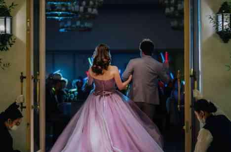 おふたりが一番感動されていたのは、披露宴での再入場シーンです。最初は緊張していたおふたりも、挙式後には全体を見渡せる余裕ができたそうで、ゲストの笑顔を見た時、嬉しさが込み上げたそうです。 また、当館は全天候型ガーデンのため、お天気の心配をしなくていいことを魅力に感じていらっしゃいました。当日は天候にも恵まれ、夜には美しいイルミネーションが灯るのでロマンチックな空間を堪能されていました。