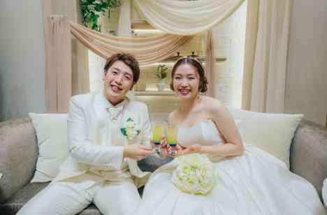 ウェルカムパーティーでは寒い時期だったので温かいスープやワイン、オリジナルカクテルを提供していました。また、披露宴ではおふたりが座る席をソファにし、お色直し後は『ペンライト&ファンサうちわ』を配ってライブのような雰囲気を演出し、各テーブルをまわってゲストとの交流を楽しむ工夫をしていました。他にペーパーアイテムや演出に使う小物をDIYされ、おふたりらしさが溢れる雰囲気になりました。