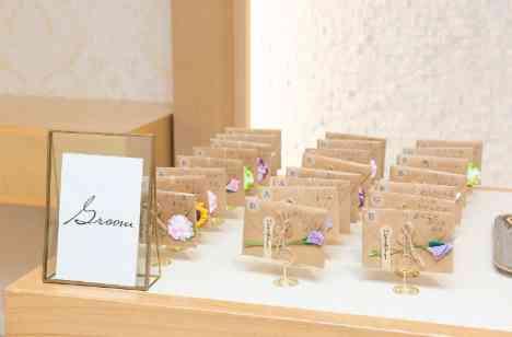 ゲストとたくさん会話ができるアットホームな結婚式にしたいとお話されていたおふたり。ウェルカムスペースにはエスコートカード兼メッセージカードをご用意されたおふたり。ゲストの皆様に取っていただきおふたりから想いを伝えていただきました。その他にもおふたりの好きなものを詰め込んだウェルカムスペースになりました。