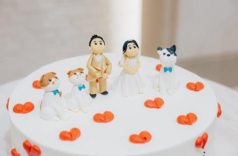 大切な家族の一員であるわんちゃんも一緒に過ごした1日。挙式ではリングドッグの演出を取り入れました。ウェルカムパーティーでは飼っている猫ちゃんをイメージしたオリジナルカクテルをご用意。ウェディングケーキにはわんちゃんと猫ちゃんのマジパンをデザインを加えました。にぎやかでかわいいおふたりらしいケーキに仕上がりました。