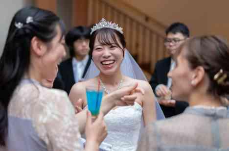 お打ち合わせの際から結婚式ではお越しいただくゲストの皆様とたくさん会話ができる時間にしたいという希望がありました。ウェルカムパーティーのお時間にはご新郎ご新婦も参加し、ゲストのみなさまとお話したりお写真を撮ったり笑顔の時間をお過ごしいただきました。ウェルカムドリンクにはおふたりのオリジナルカクテルもご用意!ゲストのみなさまからもご好評でした