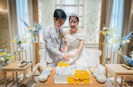 ご披露宴では定番のケーキセレモニーもゲストのみなさまに参加していただける演出になりました。ゲストのみなさまにカラフルなクリームでデコレーションしていただくペインティングケーキを取り入れました。なかなかない演出にゲストのみなさまも大盛り上がりなシーンとなりました。またサプライズでのサンクスバイトも行い、おふたりの想いが伝わる時間でした。