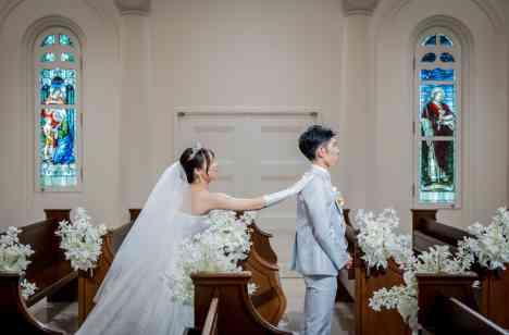 結婚式当日はチャペルの中でファーストミートからスタート。緊張して待つご新郎と笑顔でバージンロードをおすすめいただいたご新婦。笑顔での対面シーンとなりました。おふたりでのお写真タイムをお過ごしいただいた後はご家族をチャペルへお呼びしてファミリーミートのご案内。おふたりも涙を流されていたのが印象的でした。