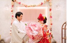 ご新婦様がピンクが大好きという事で「ピンク×ガーリー」がテーマ。 ピンクをたくさん使った装飾に、とっても華やかな色打掛と紋服姿が映える、ソファスタイルでのウエディングパーティーをご希望でした。 “ガーリーワンダーランド”というスタイルをチョイスされたおふたり。 和装・ピンク・ガーリー・華やかがキーワードとなるよう、担当プランナーと共に打ち合わせを進めていきました。