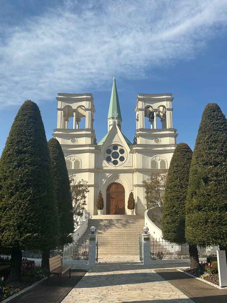 地下鉄センター南駅の改札を出て真っ直ぐ進むと右手にチャペルのつのがちょっとだけ見えてワクワクしました。駅から見えるくらい近くて助かりました。