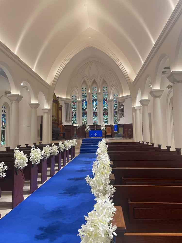 想像していたチャペル(大聖堂)よりも厳かな雰囲気で圧倒された。また、式場全体がヨーロッパの街並みのような、白基調の建物が多く、非日常感があり見学していて楽しかった。