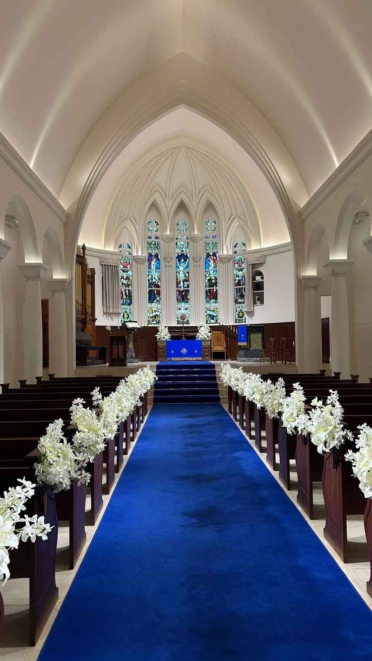 雨天時でも屋根があるところで対応できる。チャペルで映像が流せるなど他ではない設備が充実している。