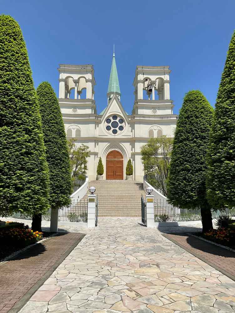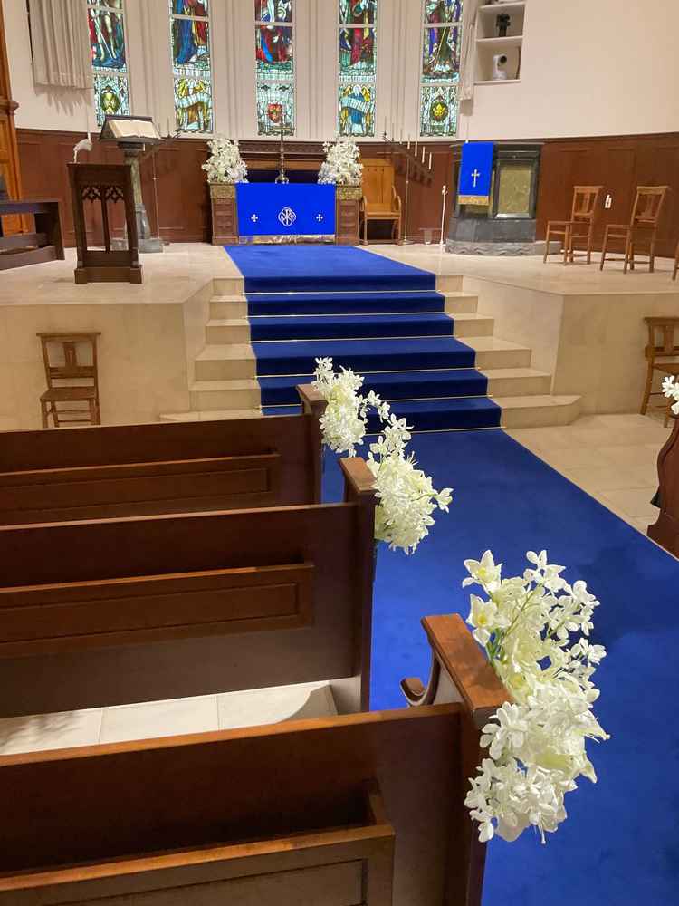 非日常の空間が広がり、素敵でした。ステンドグラスや青いロードも素敵で、ウェディングドレスをここで着たいと思いました。