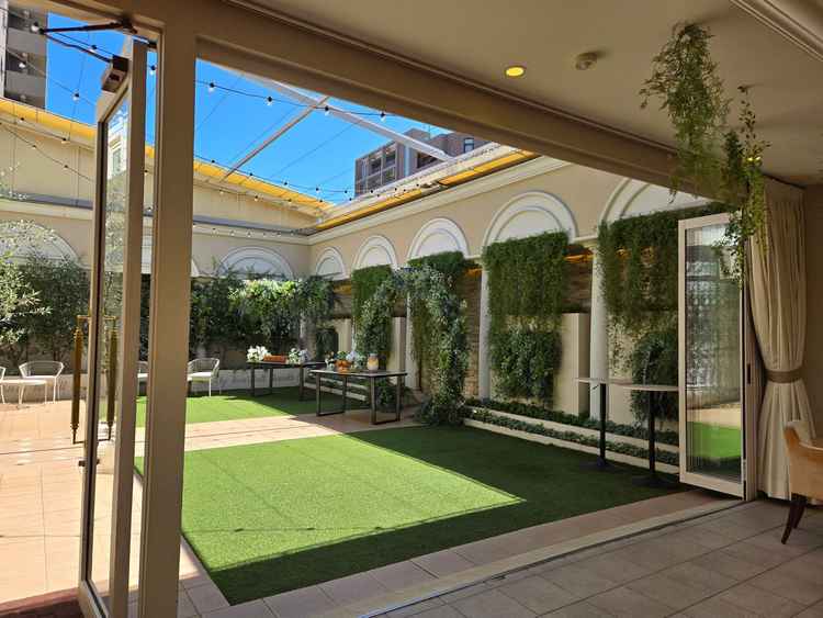 街並みから作られており非常に素晴らしかったです。またウェルカムスペースも雨に濡れない装備であったり、芝生の感じも素敵でした。 披露宴会場が想像以上に狭く感じたのと、床の色味が好みではありませんでした。