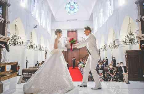 チャペルでは珍しい階段を使った入場ではゲストの皆様も涙されていました。 入場後には、チャペルで人気のダーズンローズセレモニーを取り入れて、ゲストの前で改めてプロポーズ! 皆様の前で恥ずかしそうに頬を赤らめるお2人の表情を見てスタッフも感動させて頂きました。 バージンロードには赤毛氈を使いクラシックな雰囲気に