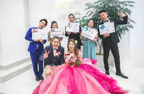 ゲスト参加型の演出として、お2人の名前を使ってあいうえお作文を披露しました。 先輩や友人などにご協力いただき完成しましたが、 ゲストの温かさを感じ、笑顔いっぱいの演出になったことが印象に残っています。 他にも早食い競争やサプライズ映像などゲストの方が楽しめる演出がたくさんある披露宴でした。