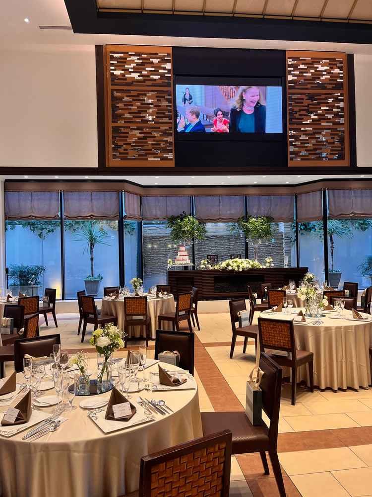 他の結婚式ではよくあるのがプロジェクターですが、ここではモニターで映像がみれ明るい時間でもみれるという点が良かったです。