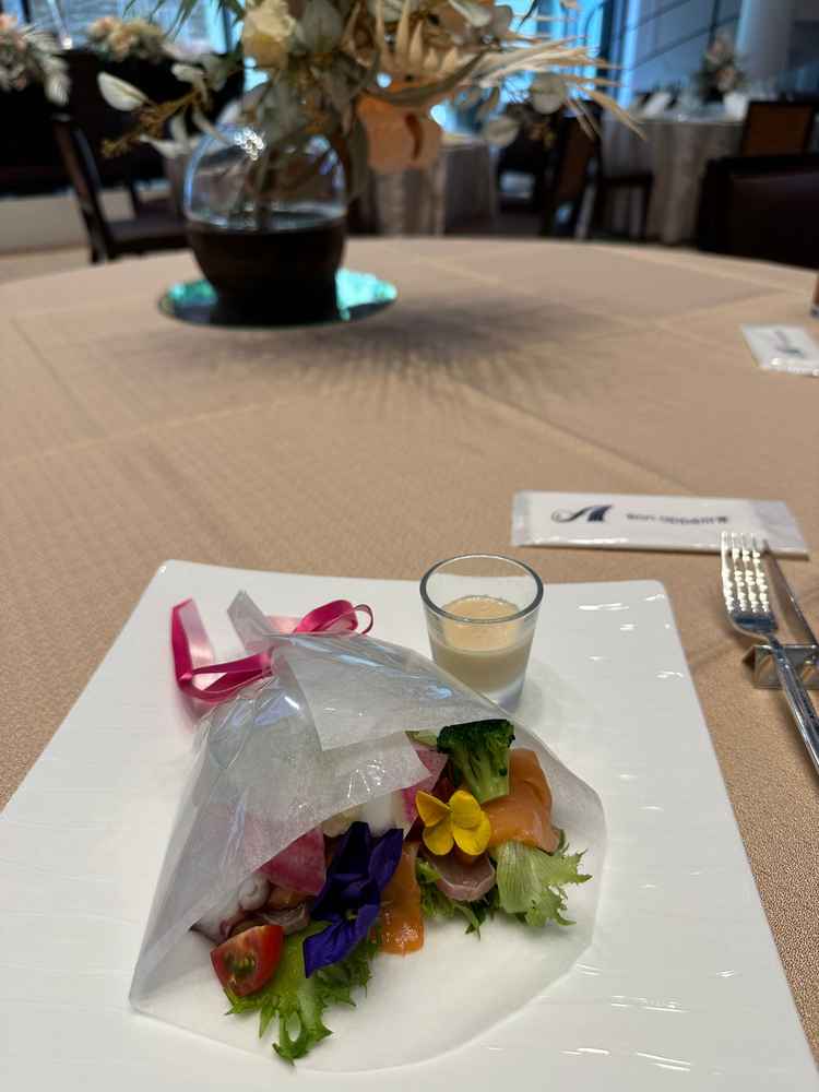 ひとつめのサラダが、ブーケ型になっておりかなり印象に残った。ひとつひとつシェフの方が説明してくれて、分かりやすかった。料理の質や満足感も良かった。