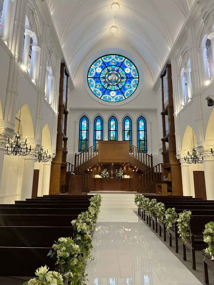 いろんなシュチュエーションが想像できた。チャペルでは落ち着いた白や茶色で統一されており、全てのシチュエーションが館内で雨天でも安心できると思った。