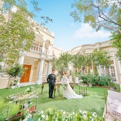 大きな窓の向こうには、リニューアルで緑がより豊かになった全面芝生の広々としたガーデン。ガーデンまで貸切の贅沢な会場で、リラックスしたオリジナルウエディングパーティを体験