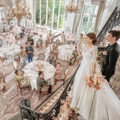 【ドレスが映える、華やかなプロジェクションマッピングショーを体感】憧れの階段入場もOK!ガーデンでのウェルカムパーティ、シェフによるフランベなど多彩な演出が叶う会場でおふたりらしいパーティをご提案◎