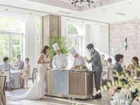 コースは和フレンチorフレンチから選択可能。披露宴の始まりは貸切シェフがおふたりとゲストをお出迎えします。ゲストの前で仕上げる料理で大切なゲストをもてなしができると好評。コースを締めくくるデザートはサービススタッフがワゴンで提供。