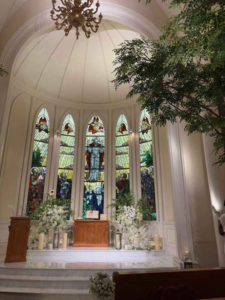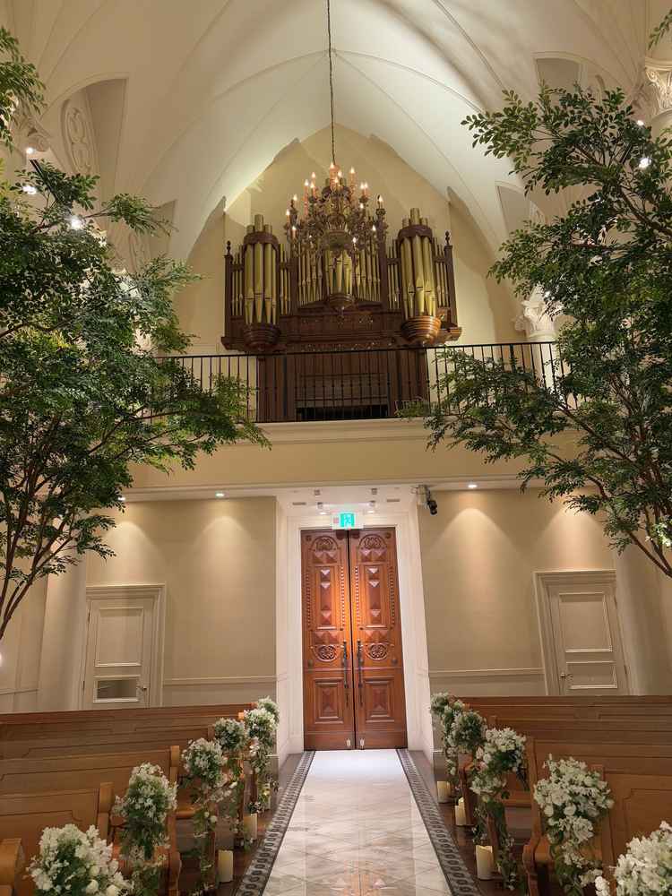 チャペルがとても綺麗でした。歴史がある、というよりは、緑があって明るい雰囲気です。挙式会場では、ライトの明るさを調節できるようです。