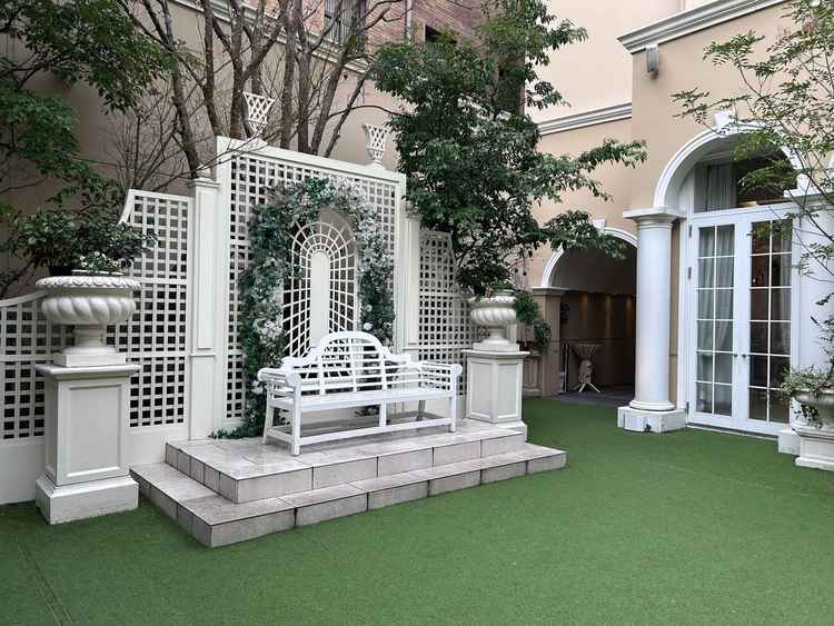 披露宴会場は鏡張りで広く感じられることや、ガーデンが周りの建物に囲まれ現実逃避のできる空間だったことが良かった。