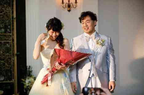 笑顔あふれるおふたりからのサプライズウェディング!
