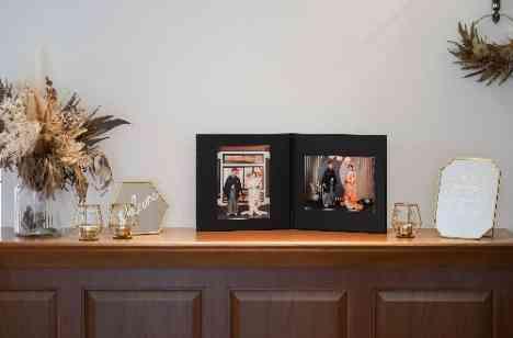 和装にて前撮りをされたおふたり! ウェルカムスペースにお写真を展示し、日本ならではの白無垢&色打掛のお写真がアンティークの会場にも馴染んでゲストの方がゆっくりをお過ごしいただける空間となりました。 またゲスト様の紹介が載った手作りのプロフィールBOOKを作成され、会食が始まるお時間から会話が弾んでいらっしゃいました♪