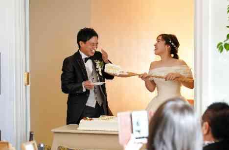 会食中はご両家のお母様同士、お父様同士がそれぞれにお酌をし新郎新婦様の結婚を心から喜ばれている様子をお見受けしました。またファーストバイトのセレモニーでは『BIGスプーン』を使って新郎様へ大きな愛を送られました!結びのお時間では、新婦様から親御様へ感謝の思いを伝えられ、記念品として花束を贈られました。