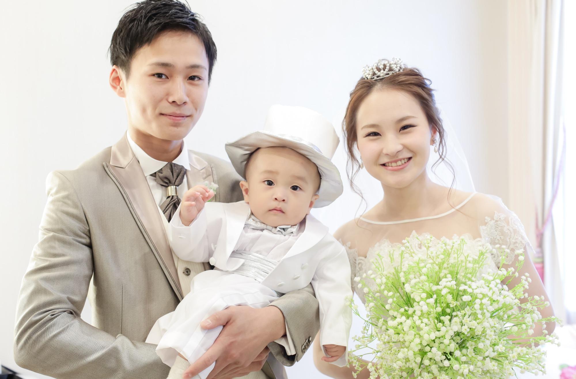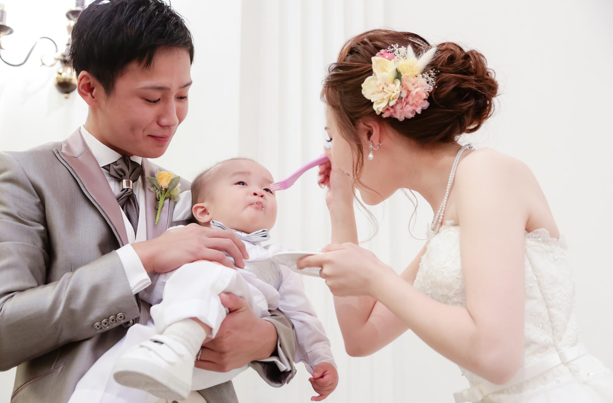 新郎様と一緒に入場とびらに立っていたのはバッチリタキシードを着こなすおふたりのお子様。一生懸命カートを押しながら運ぶ姿に挙式会場内は緊張よりも和やかなムードに。家族みんなで挙式を執り行いました。