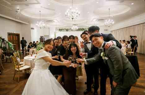 新郎様のウェルカムスピーチで開宴したパーティ!スピーチの原稿として大きく『カンペ』と書かれた台紙を持たれ、ゲスト様の笑いと声援で会場が包まれました。 乾杯とともにゲスト様が新郎新婦様へ駆け寄り『おめでとう♡』と祝福のメッセージをかけられていました。後半にはバルーンを使ったジェンダーリビールのセレモニーを実施♪赤ちゃんの性別をサプライズ報告されました。