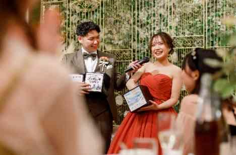 ゲスト様との時間をとにかく楽しみたいと希望されたいた新郎新婦様。受付に≪プレゼント投票BOX≫をいくつか設置しゲスト様に投票していただきました。パーティー中に新郎新婦様がBOXから用紙を選び、当たった方にプレゼントを贈る演出を行いました~!!ゲスト様が参加できるパーティはとっても盛り上がりますよね♪