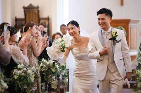 大切な皆さまの前で、ご夫婦としての一歩を踏み出す誓いのセレモニー。扉が開いた瞬間、厳かな空間の中ゲストの皆さまのあたたかなまなざしと拍手に包まれ、感謝と喜びに満ちた時間となりました♡また、挙式後のアフターセレモニーではおふたりらしいアイテムをトスするイベントをご用意され笑顔あふれる楽しい時間をお過ごしいただきました♡