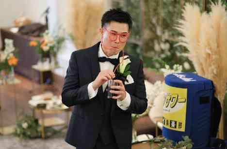 お色直しのあとは、ちょっとユニークな演出をご用意されました。ストローをつかってドリンクの一気飲み!!思わす笑ってしまうようなシーンに、会場からも拍手と、歓声があがり大盛り上がり!!!おふたりらしい遊び心あふれるシーンに、ゲストの皆さまも自然と笑顔に。演出を通してゲストの皆さまと触れ合える時間を過ごされました!
