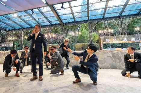 ガーデンでは、新郎様とご友人様あわせて11名によるダンスパフォーマンスを披露!サングラス姿で登場し、「PERFECT HUMAN)に合わせたキレのあるダンスで会場を一気に盛り上げました! 最初は3人からスタートし、徐々に仲間が増えていく演出にゲストもワクワク!最後は新郎様も加わり、息の合ったパフォーマンスで笑顔と歓声に包まれる、インパクト抜群のサプライズとなりました✧˖°
