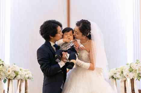 挙式のお時間は常にお子様もご一緒♪ 可愛らしく和やかなお式となりました。皆様が注目される入場シーンやウェディングキスのシーンでは、おふたりのお子様がご登場され、キスシーンではお子様のほっぺに♡お子様の表情もまた可愛らしかったです♪