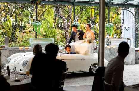 おふたりのキューピッドであるご友人様へのサンクスバイトではおふたりから幸せのケーキのお裾分け♡ またご入場ではかっこよくオープンカーの乗ってご入場頂いたりキャンドルサービスを行って頂いたりと素敵なシャッターチャンスが盛りだくさんなパーティとなりました!